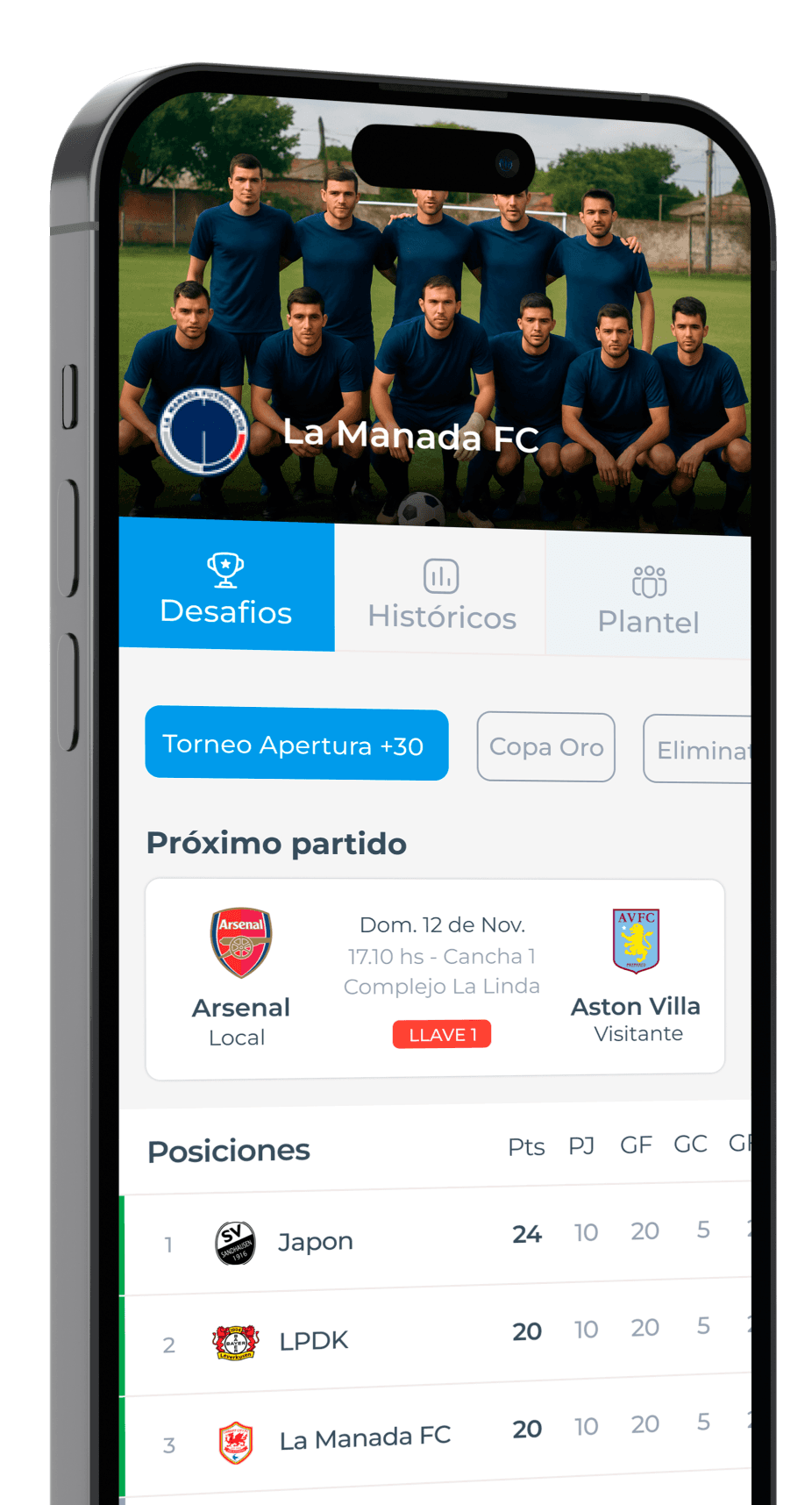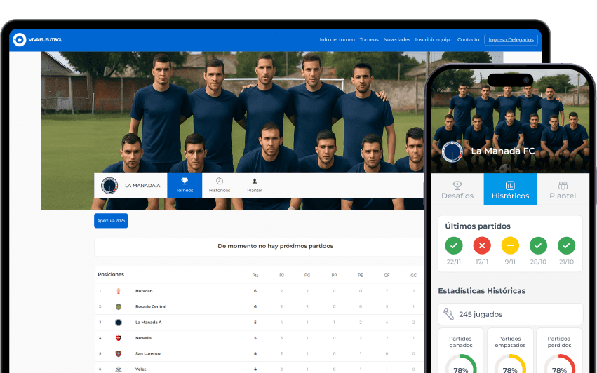 El equipo puede seguir todas las estadísticas de los torneos que esté disputando. Tabla de posiciones, sanciones, estadísticas y resultados.